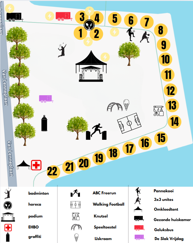 Bezoekers kunnen kennismaken met clubs en verenigingen, meedoen aan activiteiten zoals Jeu de Boules, ABC Freerun en Walking Football. Geniet van het optreden van Quicksilver Radicals, Popkoor VET! en laat je inspireren en informeren door het brede aanbod dat de wijk rijk is.